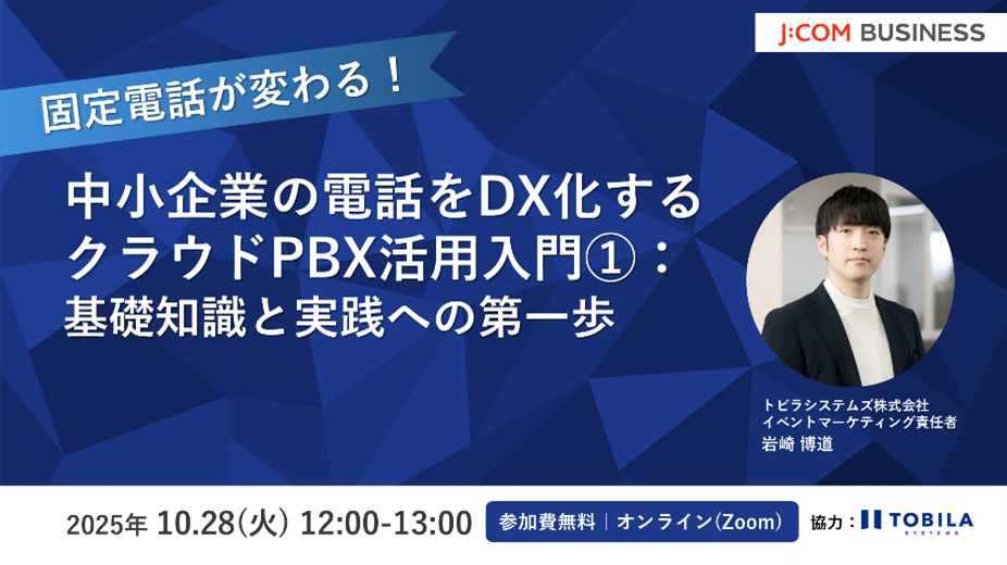 第1回目では、クラウドPBXの基本的な仕組みや特徴を解説するほか、中小企業の具体的な課題にどのように対応できるかを実践的な視点でお伝えします。