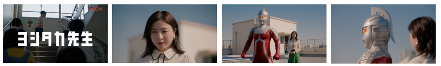 本CMは、生徒たちが「屋上で何かを見た」という噂を聞きつけ、学校の階段を駆け上がるシーンから始まります。そっと屋上の扉から覗くと、そこにはヨシタカ先生と、なんとウルトラセブンの姿が。ヨシタカ先生が「本当にWi-Fi 7って速いんですか?」と尋ねると、「デュワッ!」とウルトラセブンは答え、さらに「世界最速って本当?」と問いかけると、「デュワッ!」と力強くうなずきました。その様子を見ていた生徒たちは、ますます興味津々に。「光の国に誓って、ほんとに最速?」とヨシタカ先生が念押しして確認すると、ウルトラセブンが突然振り向き、まっすぐにヨシタカ先生を見つめます。互いの視線が引き寄せ合うように交わった瞬間、生徒たちが寄りかかっていた扉が耐えきれずに開き、一斉に飛び出しました。気づいたウルトラセブンは、あっという間に空の彼方へ。一瞬で去っていった姿に、ヨシタカ先生は「帰るの、はやっ…」とつぶやき、生徒たちも名残惜しそうに空を見つめていました。